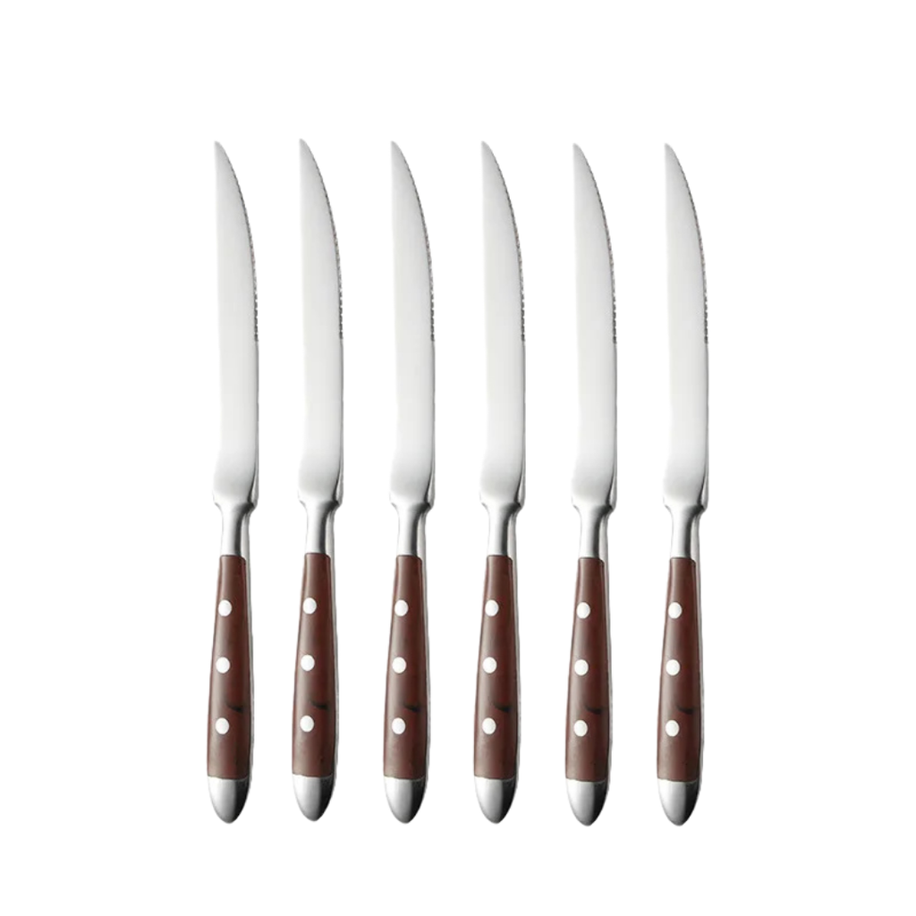 O Conjunto Talheres em aço inoxidável 430 com cabo em madeira de baquelite traz sofisticação, resistência e conforto para transformar cada refeição em um momento especial.