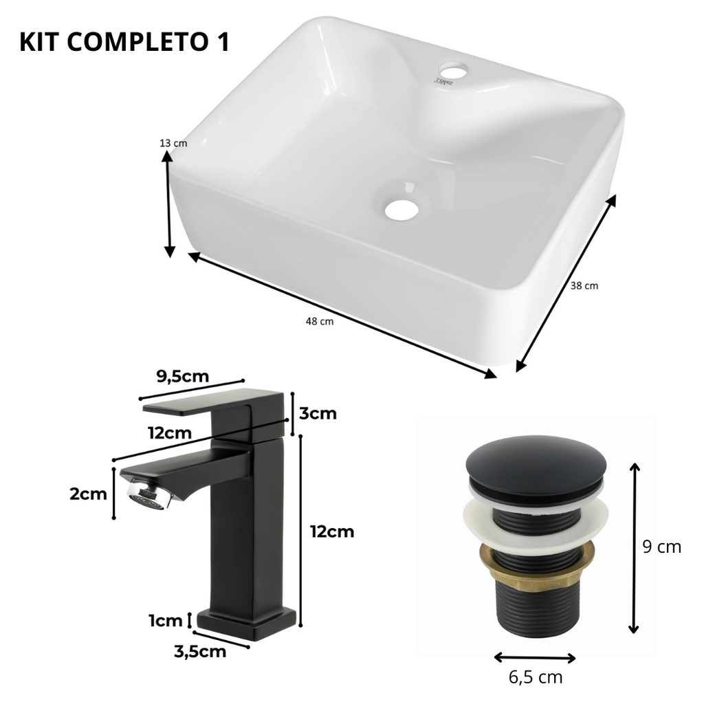 Cuba retangular de sobrepor, em cerâmica de altíssima qualidade. Acabamento esmaltado em branco com detalhes em dourado, indicada para ambientes residenciais e comerciais. Peso aproximado de 10kg, garantindo robustez e durabilidade.