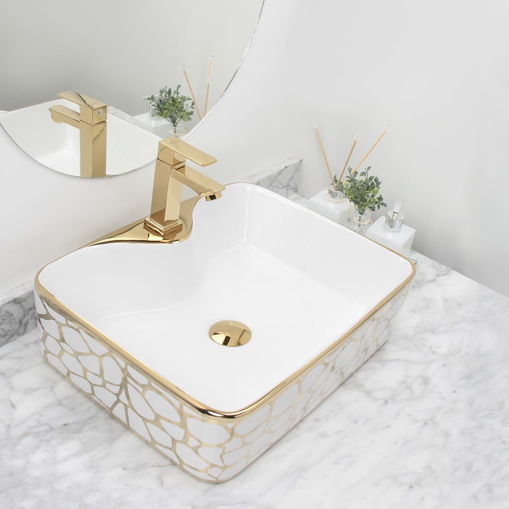 Cuba Para Banheiro Sobrepor Retangular Cerâmica 49 x 38cm Luxo Gold – Sofisticação e Durabilidade