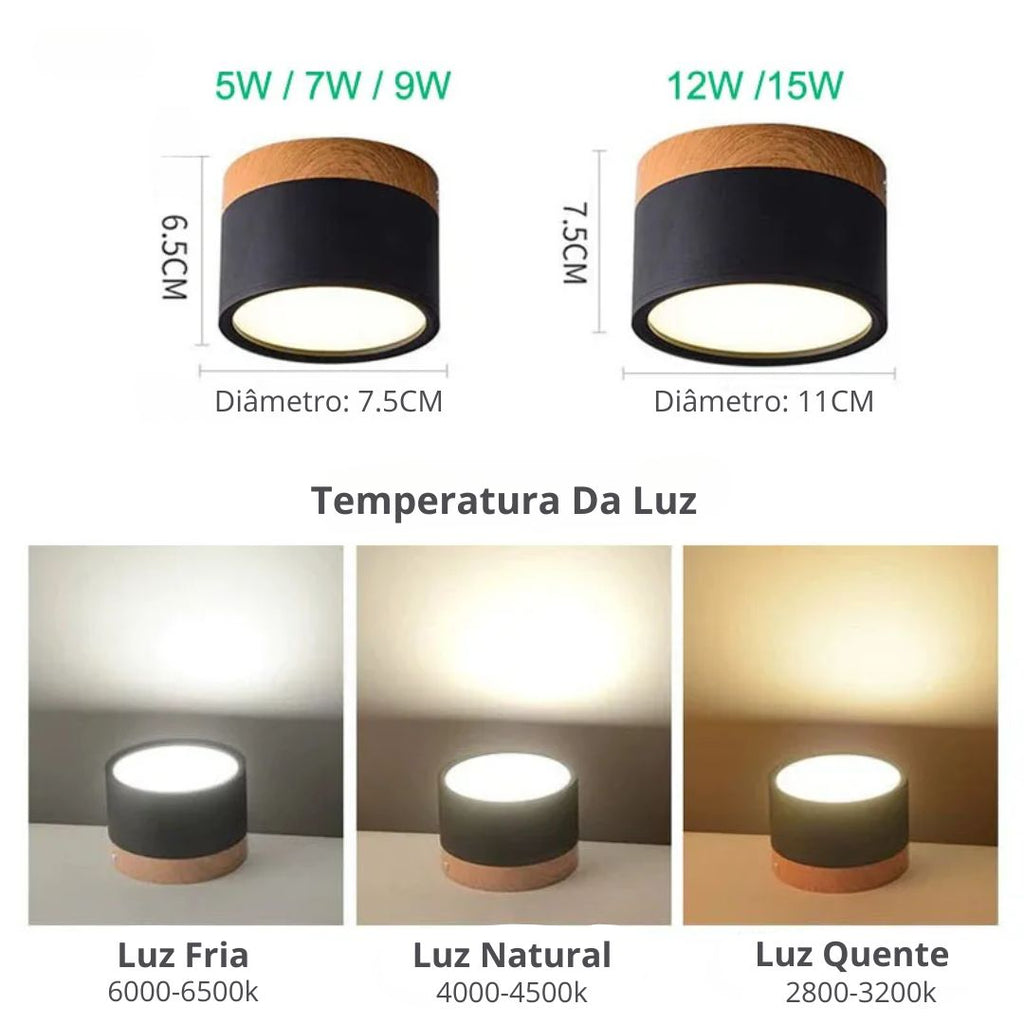 Luminária LED de Teto: Elegante e Moderna com Acabamento em Madeira e Cores Pasteis