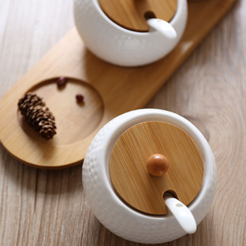 Conjuntos Porta Temperos de Cerâmica e Base de Bambu: Sofisticação para sua Cozinha