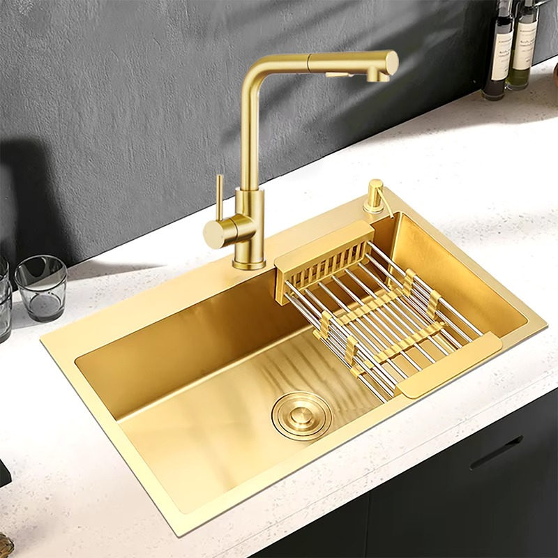 Leve Sofisticação e Praticidade para Sua Cozinha com a Cuba Pia Dourada Inox 304 Gourmet 60x45 com Torneira e Acessórios